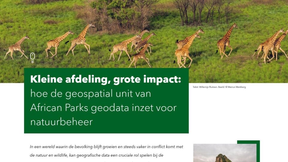 In een wereld waarin de bevolking blijft groeien en steeds vaker in conflict komt met de natuur en wildlife, kan geografische data een cruciale rol spelen bij de bescherming van mens en dier. Non-profitorganisatie African Parks is verantwoordelijk voor het beheer van 23 beschermde natuurgebieden in 13 Afrikaanse landen. Daarbij zetten ze zich niet alleen in voor de bescherming van de natuurgebieden en dieren in de parken, maar richten ze zich ook sterk op economische ontwikkeling en armoedebestrijding in de omliggende gemeenschappen. Zo zorgen ze ervoor dat elk park op de lange termijn ecologisch, sociaal en financieel duurzaam is. Sinds 2023 heeft de organisatie een geospatial unit, die als taak heeft de kracht van geografische data maximaal te benutten bij deze missie.