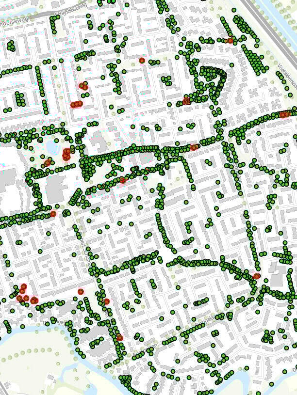 Thomas legt uit hoe de deep learning-component werkt binnen de oplossing. "Dankzij deep learning in ArcGIS Pro kunnen we ruimtelijke objecten en veranderingen in imagery sneller vinden en met een hoge nauwkeurigheid analyseren. Dit op basis van met AI-getrainde herkenning van die objecten. De oplossing brengt met een kaart en kleurcodes op een scherm in beeld wat de vigerende bestemmingssituatie en de feitelijke situatie is. Rood vraagt bijvoorbeeld aandacht en een verwerking of aanpassing. Denk bijvoorbeeld aan een aanbouw of een schuur die er wel staat, maar nog niet goed geregeld is, of juist wenselijk is in het omgevingsplan. Bij groen op de kaart hoeft er juist niets te gebeuren. Het mooie is ook dat de oplossing in relatief korte tijd gerealiseerd wordt.