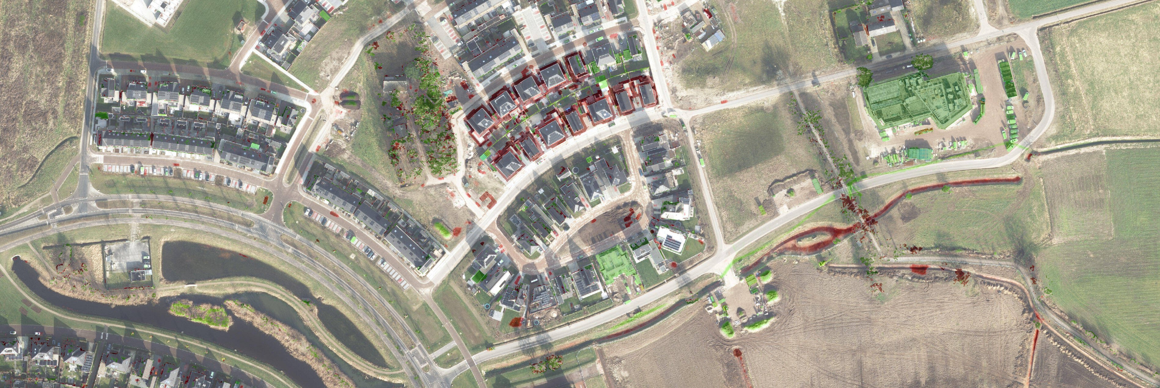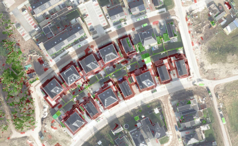 Zoals blijkt uit bovenstaand voorbeeld, is True Ortho dé manier om veranderingen in de leefomgeving nauwkeurig en efficiënt te detecteren. Dankzij de loodrechte opname en hoge resolutie bieden deze DSM-orthofoto’s een ongeëvenaarde precisie, waarbij elk detail exact wordt vastgelegd en ruis tot een minimum wordt beperkt. In tegenstelling tot traditionele orthofoto’s, waarbij omvalling optreedt, sluiten True Ortho-beelden naadloos aan op andere kaartlagen. Dit maakt het mogelijk om mutaties zoals aanbouw, sloop en subtiele bouwwijzigingen helder in beeld te brengen.