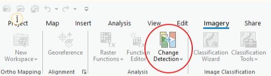 Ga naar de Imagery tablad en klik daar op de Change Detection Wizard.