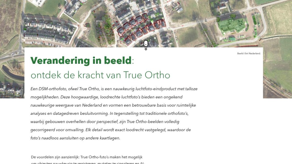Meer weten over de True Ortho en DSM Nederland? In deze StoryMap-collectie vindt u productinformatie, diverse analysevoorbeelden en meer inspiratie over True Ortho en DSM Nederland.